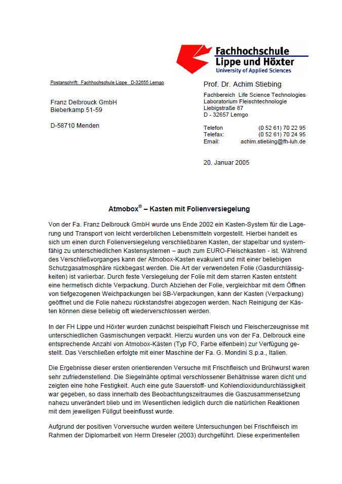 Die Funktionsweise der Atmobox wurde auch wissenschaftlich untersucht. Tests mit Frischfleisch und Fleischprodukten am Labor für Fleischtechnologie der Fachhochschule Lippe und Höxter zeigten sehr positive Ergebnisse.